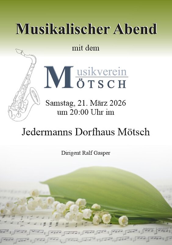Der Musikverein Mötsch lädt herzlich zum musikalischen Abend ein.